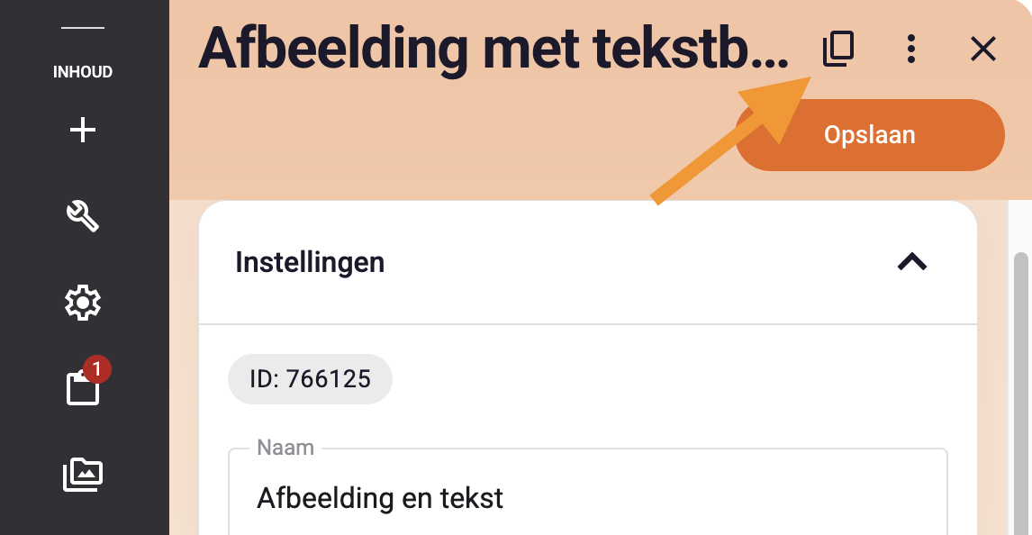 - Ga naar de pagina waar je het bouwblok staat wat je wilt dupliceren (hergebruiken).